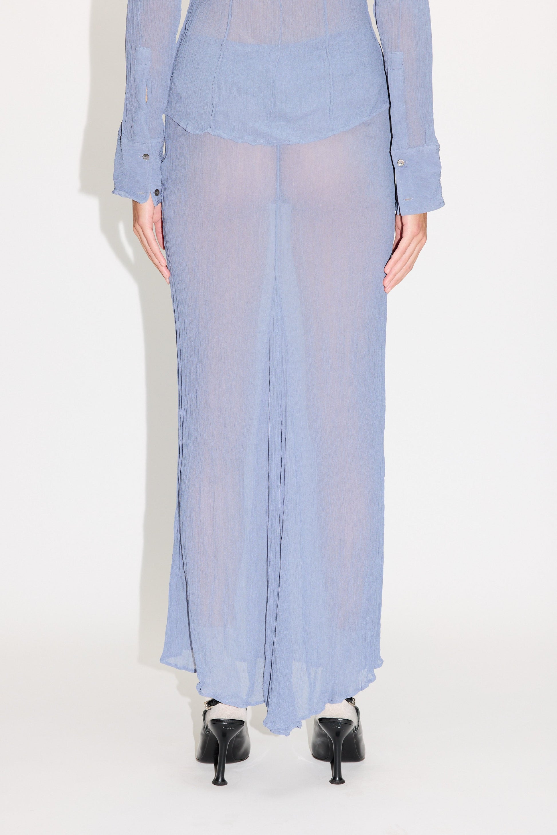 - Read Skirt is a long slim skirt with extra volume at the bottom. Crafted in a transperant crinkled viscose crepe.