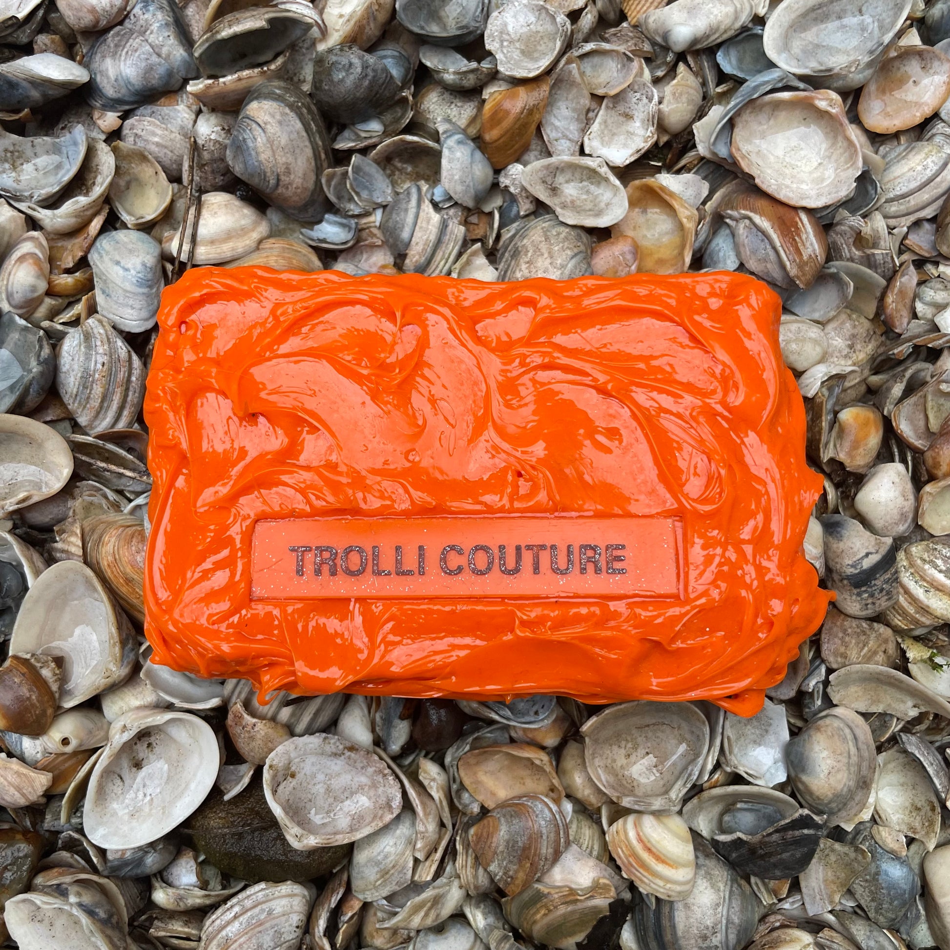 Trolli Couture is a distinctive fashion label founded by Berlin-based artist and designer Christin Rothe. Renowned for its innovative approach, the brand specializes in creating handmade, silicone-based imitations of luxury designer handbags. These unique pieces blur the line between wearable art and sculptural objects, offering a playful yet profound commentary on fashion and materiality.100% rubber, stainless steel.