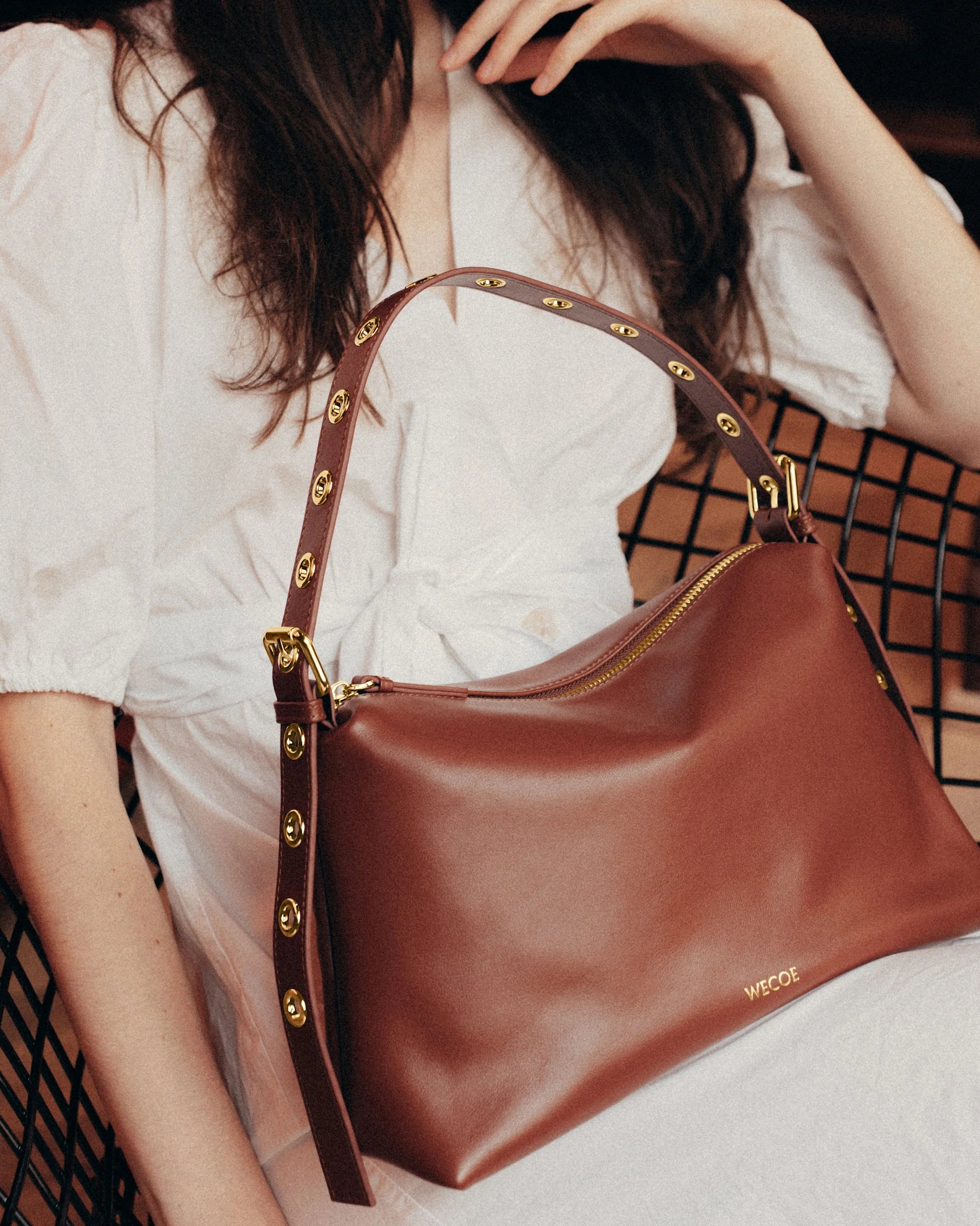 A softly structured hobo shoulder bag in Terra Brown. Lightweight yet spacious, it features two interior pockets to keep your essentials organised. The adjustable strap ensures a perfect fit, season after season. This bag embodies refined minimalism paired with everyday functionality. More product photos coming soon.
